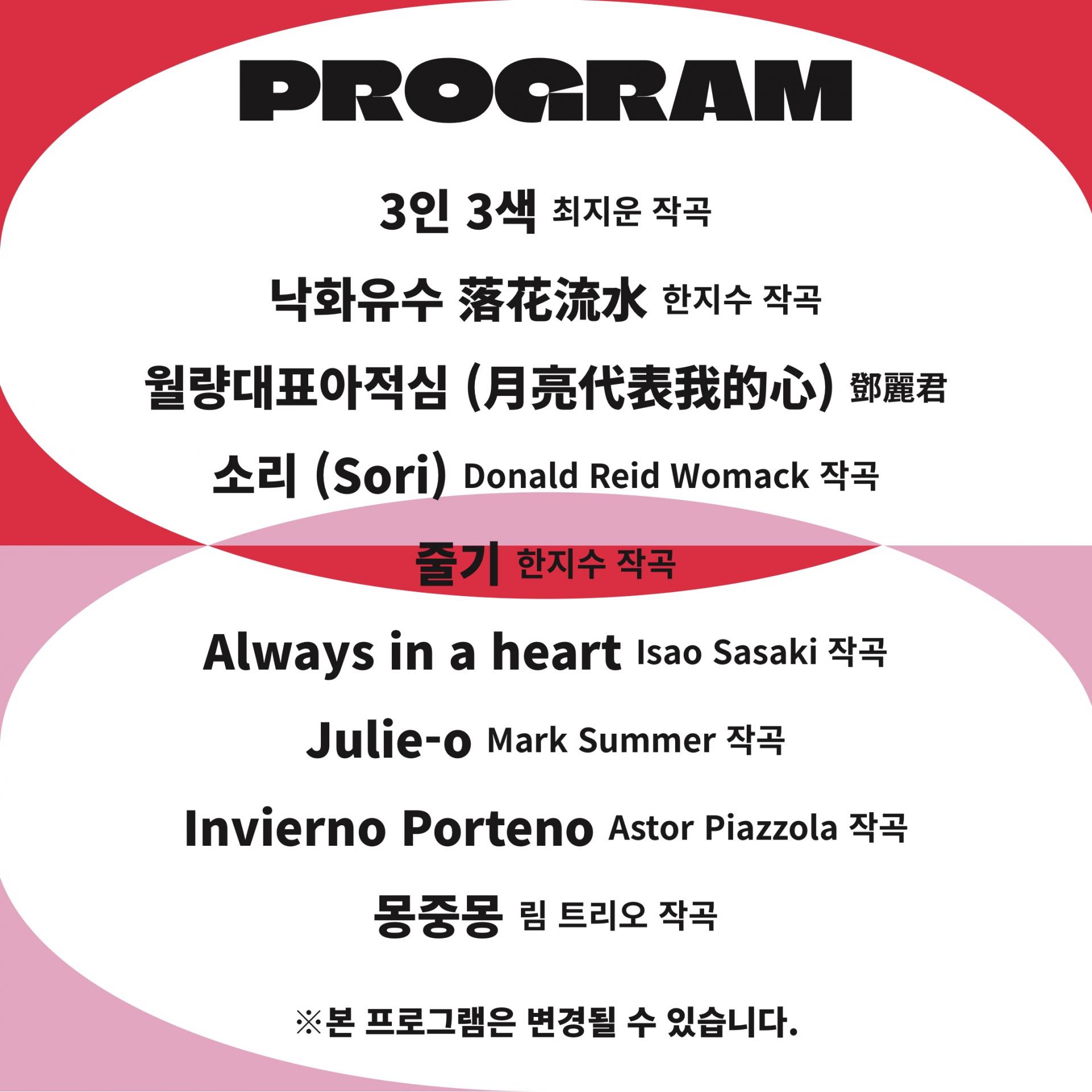 · 본 공연은 한글 문자 통역을 진행합니다. 무대 오른편에 별도의 모니터를 활용해 개방형 문자 통역을 진행하니 참고 바랍니다.